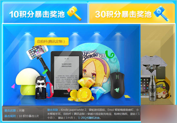 活動獎品截圖,有10積分暴擊獎池和30積分暴擊獎池的。