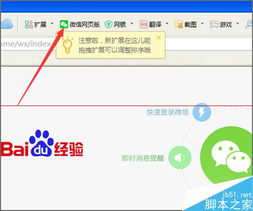 3、點擊添加之后,就可以在上面的擴展欄中看到我們新添加的微信網頁版。