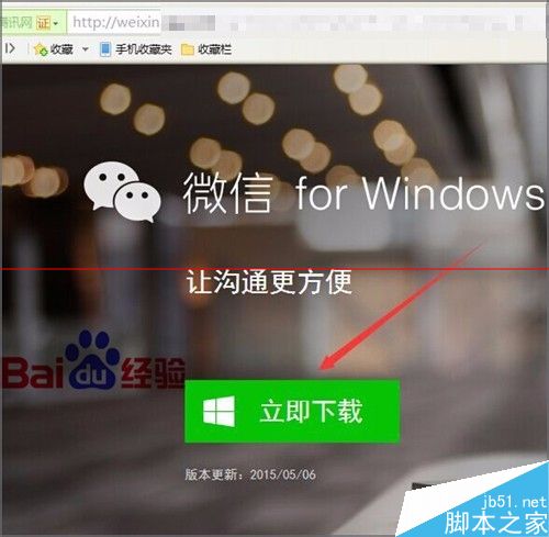 8、點擊之后,在它彈出的頁面中可以看到有一個微信for windows的頁面。在下面有一個立即下載。我們下載安裝后,就會在桌面上生成一個微信的圖標。當想使用微信的時候,只需打開后掃描一下它的二維碼,在手機上點擊確認登陸就可以進行使用。