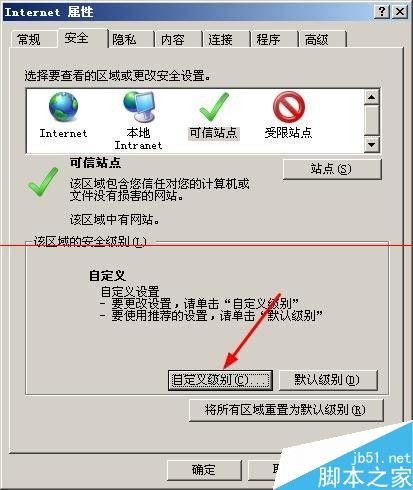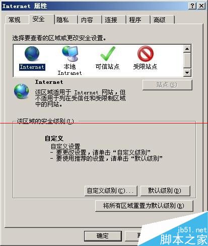 1、打開瀏覽器的"internet選項",切換到“安全”選項