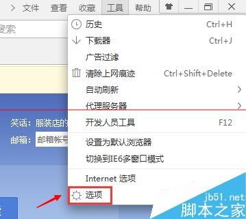 3、點(diǎn)擊【選項(xiàng)】按鈕,進(jìn)入選項(xiàng)界面,在該界面可以對(duì)瀏覽器進(jìn)行設(shè)置,如下圖所示。