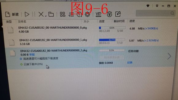 9.在迅雷點擊新建任務-粘貼-下載(詳見圖9-1至9-5)。一直到新建的下載文件迅雷顯示出錯證明圈下完了(打個比方GTA只有10個pkg文件檔你下到第11個pkg時是沒有這個文件可供下載的所以顯示出錯(見圖9-6)。(我個人喜歡在迅雷粘貼里改pkg名前文件數字,其實都一樣)