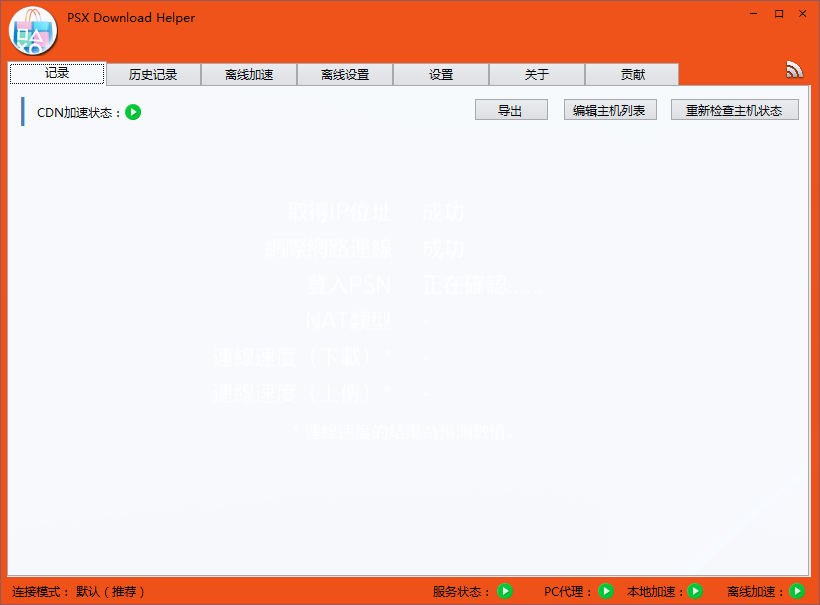 軟件提供了多種解決方案來解決玩家無法更新系統和下載游戲速度太慢的問題。主要的“CDN加速”功能可以使你無需替換與本地下載,打開軟件配置代理后直接在主機端高速下載和更新,并且提供部分科學連接方法,可以在線觀看你土鱉的視頻什么的。你也可以選擇“本地加速”模式,用軟件截取到更新或者游戲的下載地址用迅雷或者qq旋風等下載工具下載到本地,然后回傳到主機。“離線加速”模式直接讓主機從迅雷等服務器上高速下載游戲和更新。