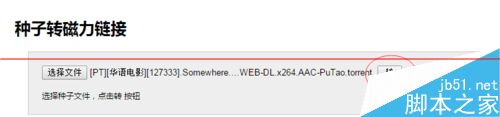 2、先舉個例子如何進行種子轉磁力鏈接。在網頁中點擊“選擇文件”,然后在你的電腦中將已經存在的種子選中即可。