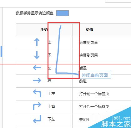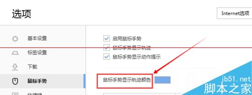 5、點擊【鼠標手勢】后,就可以進行設置了。設置【軌跡顏色】就在上方