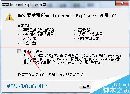 4、選擇【刪除個人配置】,點(diǎn)擊下方的【重置】即可