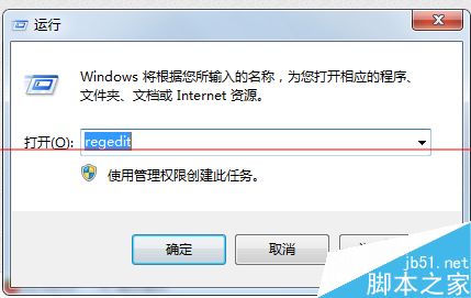2、在彈出的運(yùn)行對話框里輸入【regedit】,點(diǎn)擊確定打開注冊表