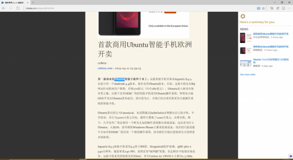 內置了Cortana語音助手,右鍵你想搜索的文字,點擊ask Cortana就能進行搜索。