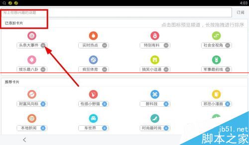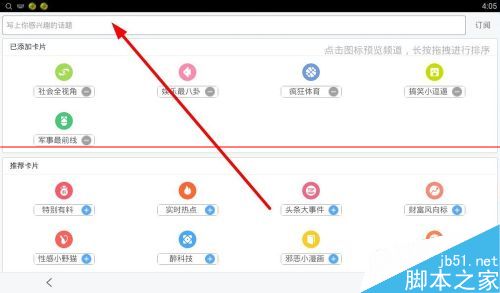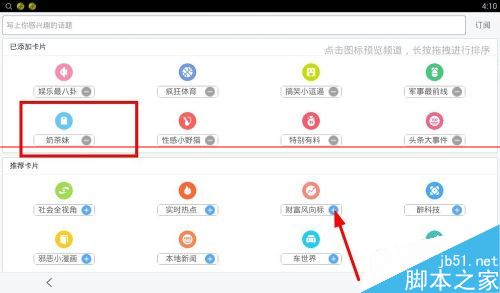 7、看看,我們剛才的卡片是不是就添加成功了呢,其實(shí)我們是可以直接添加百度瀏覽器,推薦的卡片,下圖的位置,點(diǎn)一下就是了!