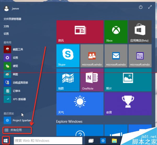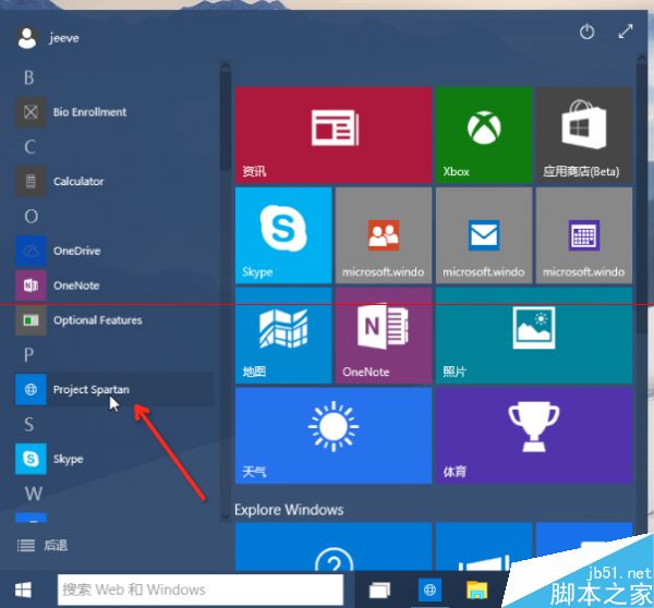 安裝完成后,Spartan瀏覽器并未默認出現在傳統桌面中,你需要點擊左下角Windows鍵,并點擊所有應用,然后找到名為Project Spartan的項目,可見在技術預覽版本的win10中,Spartan還未被正式冠名。