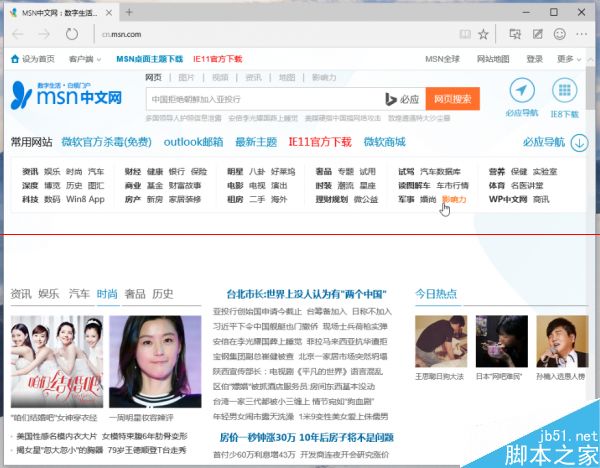 緊接著,便會打開Spartan默認的MSN主頁,并加載出Spartan瀏覽器的全貌: