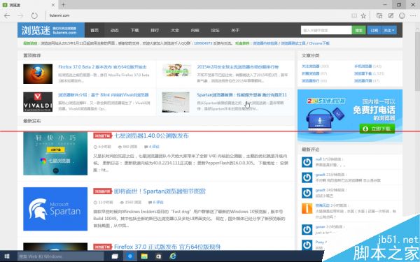 用 Spartan 斯巴達瀏覽器打開瀏覽迷的界面,由上圖可以看出整個瀏覽器的布局非常簡潔,標簽欄、地址欄以及后退刷新鍵等與之前的IE11相比,更友好,更易操作。