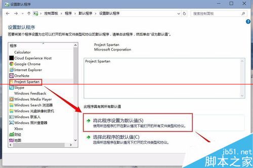 5、斯巴達Project Spartan瀏覽器選擇它,然后再點擊【將此程序設置為默認值】最后確認一下就可以了。