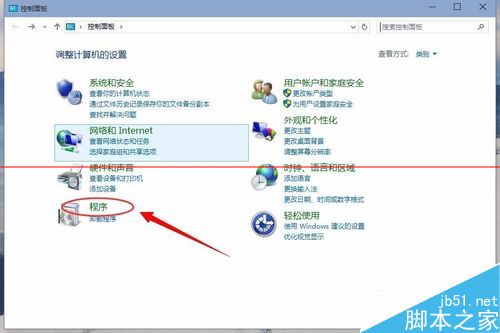 2、進入控制面板后,再然點擊【程序】請注意不要點卸載程序。