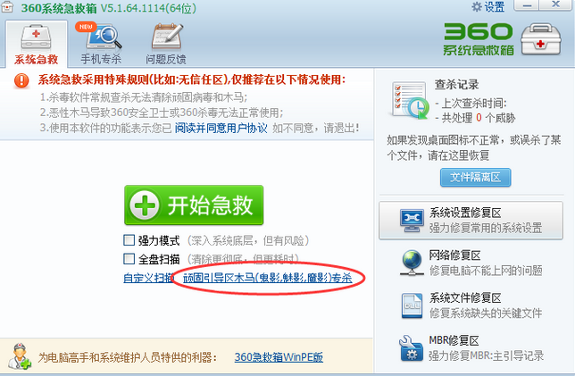 2、選擇“頑固引導區木馬專殺”,按提示進行操作