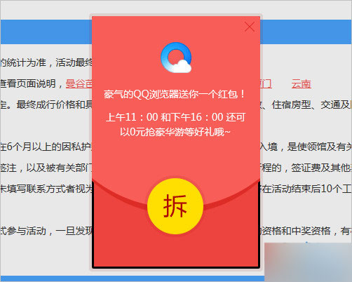 用QQ瀏覽器打開活動地址,獲得1次拆紅包的機會,設QQ瀏覽器為默認瀏覽器再獲得1次抽獎機會