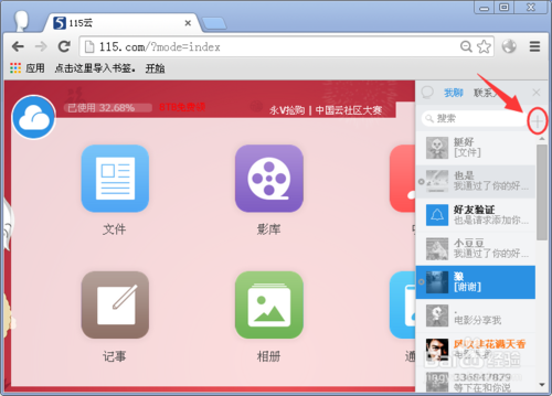 1、首先登錄115網(wǎng)盤賬號后,點(diǎn)開“我聊”