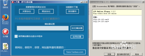 下載后啟動“云共擼”,單擊窗口中的“保存腳本”按鈕,路徑可任意保存,保存完成后啟動火狐瀏覽器,并將保存后的腳本拖動到火狐瀏覽器中,在彈出的安裝頁面單擊“安裝”按鈕;