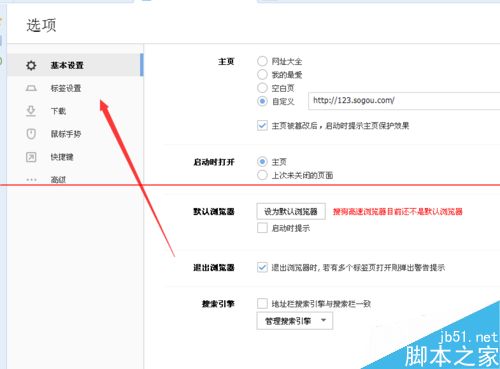 5、我們在左邊看到好多的選項設置,我們找到的標簽設置,這是我們要選擇的