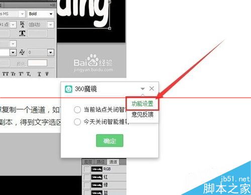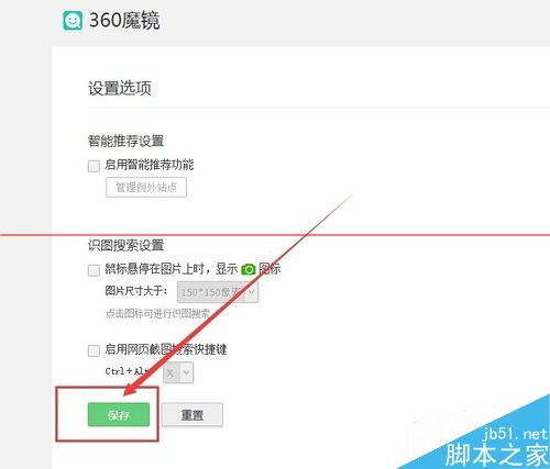 4、進入360魔鏡的功能設(shè)置按鈕之后,點擊進入詳細的設(shè)置界面,如果不需要這個功能的話,將所有的選項全部取消勾選,然后點擊最下方的確定按鈕。