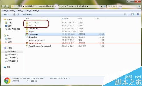 5、可以在文件夾中,找到以Chrome版本號命名的文件夾。如果這類文件夾不存在,說明被移動了,從而會導致更新失敗。