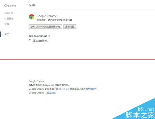 2、這時,Chrome會顯示當前版本號,以及自動檢查更新。