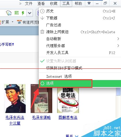 3、點(diǎn)擊工具,在彈出的下拉框中點(diǎn)擊選項(xiàng)