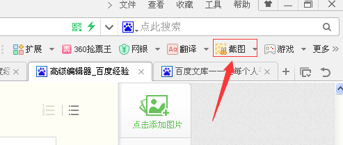 2、在該網頁中,瀏覽器的右上方有菜單欄,其中有截圖功能菜單,如圖