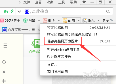 4、再選擇【保存完整網頁為圖片】選項,其中還有快捷鍵Ctrl+M組合可以進行同樣的操作,如圖