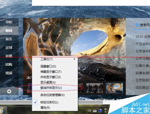 4、若是想取消這種并排效果,右鍵選擇空白任務欄,選擇”撤銷并排顯示“就可以了。