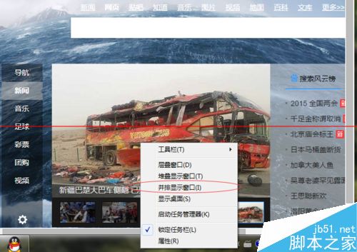 2、右鍵空白的任務欄,選擇”并排顯示窗口“選項