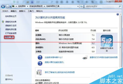 4、我們在這里找到“性能信息和功能”點擊進入在左側點擊“高級工具”。