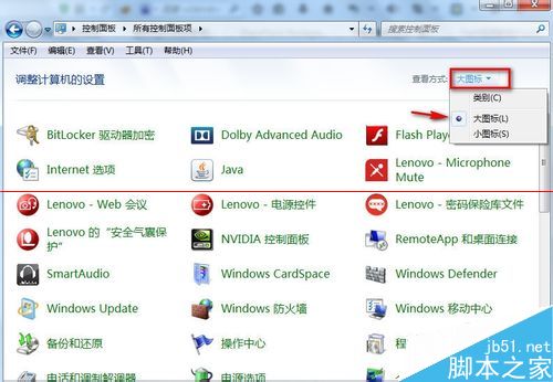 3、在“控件面板”打開的控制面板窗口中選擇查看方式為“大圖標”。