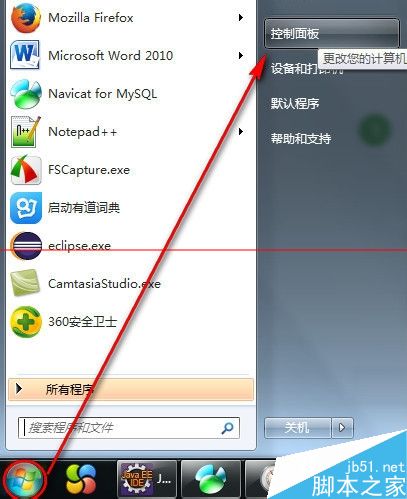 2、我們選擇“開始”→“控制面板”打開控制面板窗口。