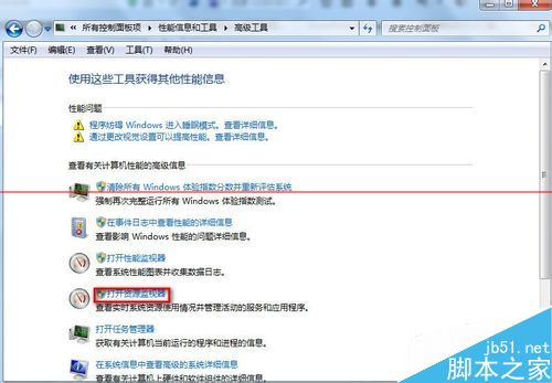 5、在打開的“高級工具”窗口中選擇“打開資源監視器”打開。