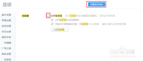 6、如果平常上班比較老實,也可以點擊老板鍵左側的對號取消老板鍵功能,如下圖所示。