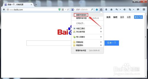 3、在書(shū)簽下拉菜單中選擇【管理所有書(shū)簽】,進(jìn)入書(shū)簽管理界面,如圖所示: