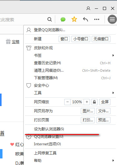 2、在彈出的下拉中就有一個(gè)“設(shè)置為默認(rèn)瀏覽器”。