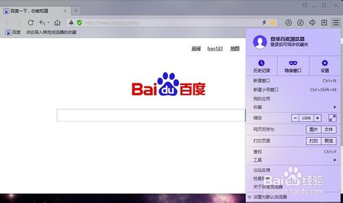 2、在瀏覽器界面點擊右上角的【菜單】按鈕,彈出菜單界面,如圖所示: