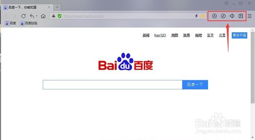1、百度瀏覽器安裝完成以后,工具欄上就會有截圖按鈕,由于誤操作,截圖按鈕不見了,如圖所示: