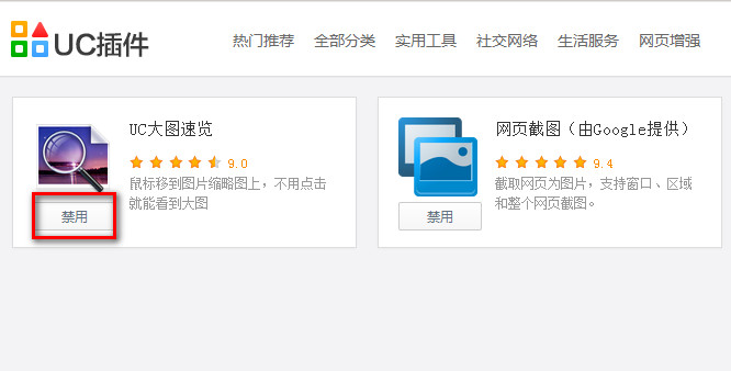 3、這里就可以看到您已經開啟的功能插件了,選擇需要的開啟,不需要的禁用即可
