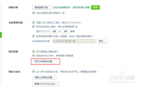 5、選擇右邊的“網頁內容高級設置”