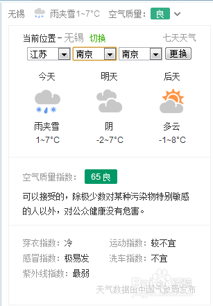 4、城市選擇完成后,點擊【跟換】按鈕,完成城市天氣切換,如圖所示: