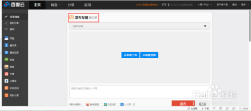 3、點擊【分享專輯】選項,頁面切換到發布專輯界面,如下圖所示。
