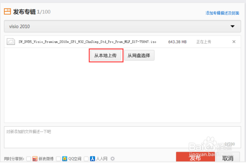 8、文件上傳完畢之后,點擊下方的【發布】按鈕,即可成功的分享自己的專輯了。如下圖所示。