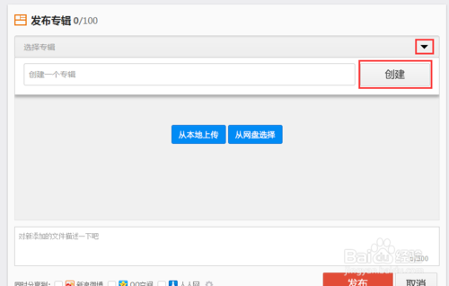 4、如果之前尚未創建過任何專輯,可以點擊【選擇專輯】右側的小箭頭,彈出【創建專輯】下拉菜單,如下圖所示。