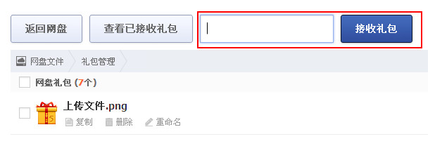 在115網盤中有一個網盤的禮包功能,用戶將網盤中的文件和文件夾打成一個禮包,每個禮包將生成一個唯一的禮包碼,將禮包碼發送給朋友和親人他們就可以下載你的分享的文件了