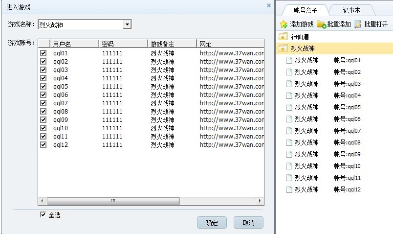 第二、多號一鍵登陸,在游戲盒子里選擇你要的賬號,點擊確定即可一鍵登錄多個賬號