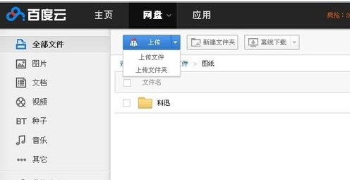 步驟一:登錄到百度網盤以后,然后再全部文件窗口里面點擊選擇要上傳文件的文件夾