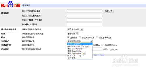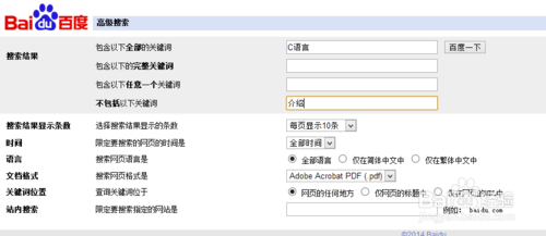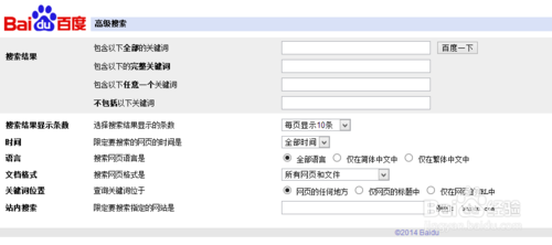 由于我們要搜索指定的網(wǎng)站或者文檔格式或者我們需要設(shè)定搜索結(jié)果中不包含什么關(guān)鍵詞,包含任意一個關(guān)鍵詞,完整關(guān)鍵詞,以及各種設(shè)置,但是記不住直接輸入的代碼,于是我們可以使用百度高級搜索工具。